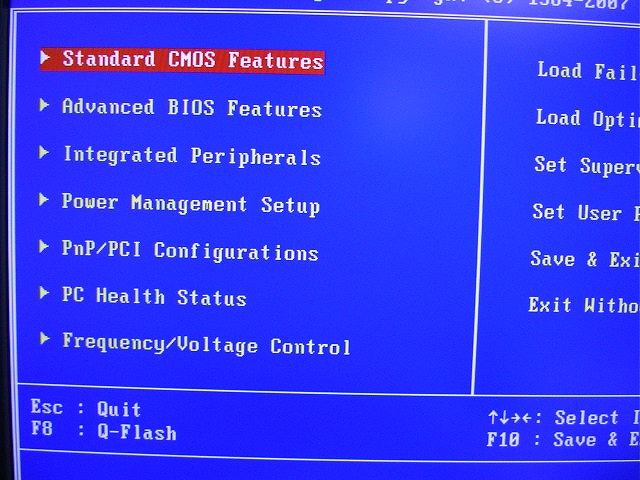 2007年10月06日 GA-945GCMX-S2 rev.6.6 BIOS ギガの場合は、隠しモードがあるので まずは、shift+F1を押す |