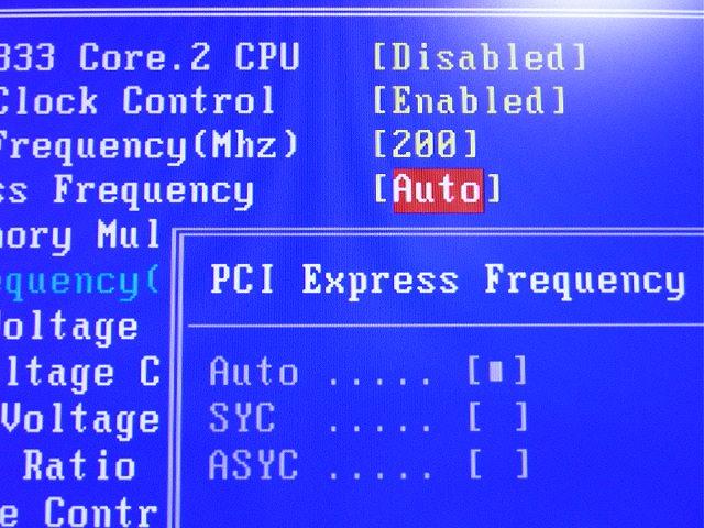 PCI Express Frequency PCIのFSB設定 オーバークロックの場合 PCI-E 100MHz固定モード ASYCに設定する (たぶん |