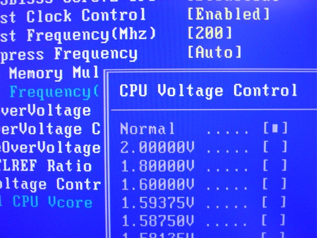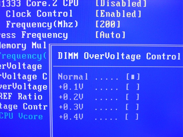 DIMM OverNoltage Control メモリ電圧の設定 |