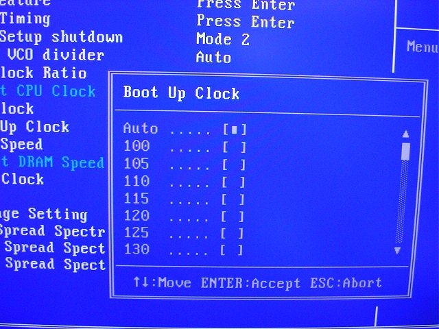 Boot Up Clook これは、オーバークロックでの起動時に役立つ 普通 いきないり オーバークロックモードで 立ち上げるが、その場合 失敗するとこも多く 起動不能になる この機能は、立ち上げは低クロックで設定して起動 起動後にオーバークロックモードに自動的に変更する ありがたい機能である |