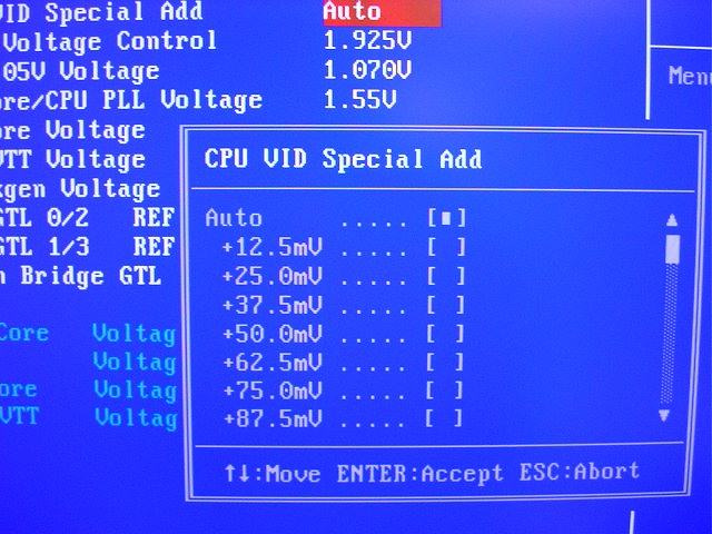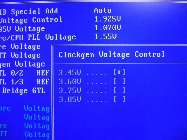 DFI LANPARTY UT P35-T2R BIOSにあった CPU VID Controlの項目はなく CPU VID Special Addのみ CPU電圧を、さらに上げる場合に使う +xx.x mVの表示は正直、解り難い |