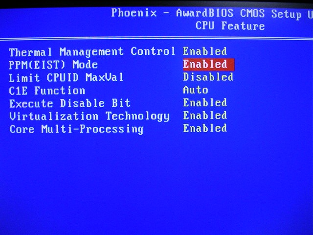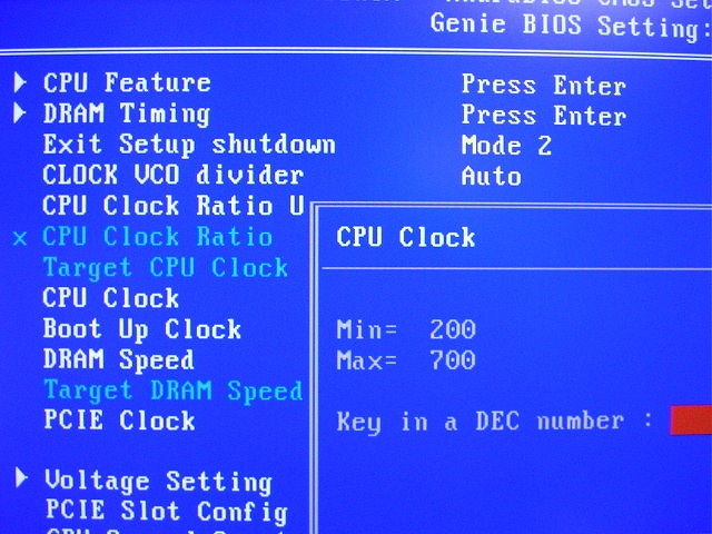 Genie BIOS Settingの項目を開く CPU Feature オーバークロックで省電力モードは必要ないので PMM(EIST) Mode C1E Function をDisabledにする 3Dゲームでも、ちょつと タイムラグ的なのが気になれば 省電力モードを解除しても良いと思う |