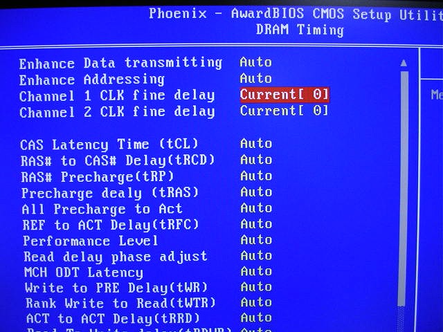 DRAM Timing メモリタイミングは、普通に動かすならAutoでよい バルクで、安定しないばあいは タイミングを調整する 数値を大きくすると遅くなる CAS Latency Time RAS# to CAS# Delay RAS# Precharge Precharge Dealy もし、解らない時はCPU-Zで確認するといい 逆に、ハイエンドメモリの場合は メモリの設定値に合わせるといい |