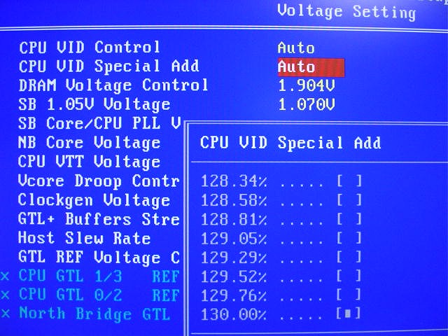 CPU VID Control オーバークロッカーの場合 パイ焼きなどでは、無制限に上げる ようは、耐性の限界まで上げるのだ CPUも個体差があるので 低電圧タイプ 高電圧タイプと 確かめる必要がある 問題は発熱で、電圧を上げれば それだけ冷やさないといけない 4Gオーバーでパイ焼きを、する人も多いが 基本、常用は無理と思ってほしい 常用でのオーバークロックでは 基本 定格電圧 最大でも1.35Vだろうと思う (個人的に |