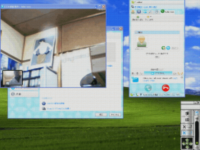 PLANEX CM-US35MT 2台でスカイプ これは、相手の部屋の中 小さい画面が私である 無料でビデオ電話の世界が楽しめるのである 実際、画像なんていらないと思うのだが 使ってみると、画像があるのは便利で 面白い 画素数が少ないのが物足りないと思いますが 自分の顔を、ボカしてくれるので安心です・・・ 回線の負担もないし 複数での会議の場合は残念ながらビデオ機能は無効 でも、ソフトをインストールすることにより可能になります Festoon が代表的なソフトですが まだ、幾つかありますのでググって調べてください |