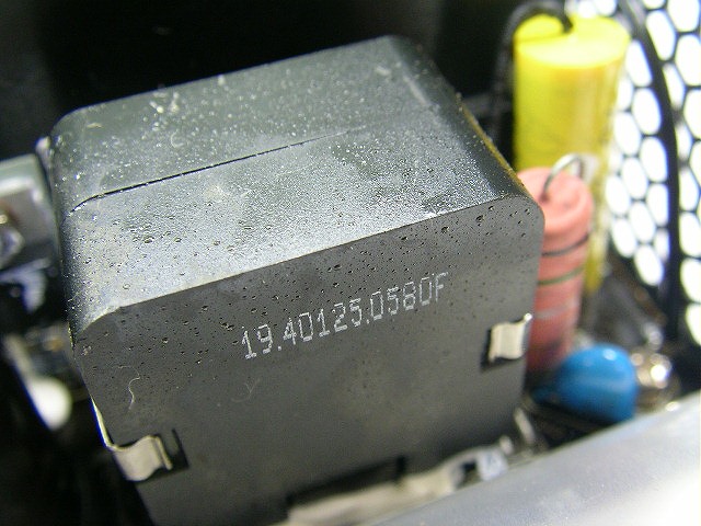 安い部類の電源なら この部分は、むき出しのコイルなのだけど この辺りが、80PLUS Silver認証の証 |