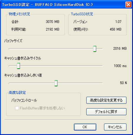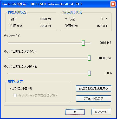 TurboSSDを有効化しました デフォルト設定 |