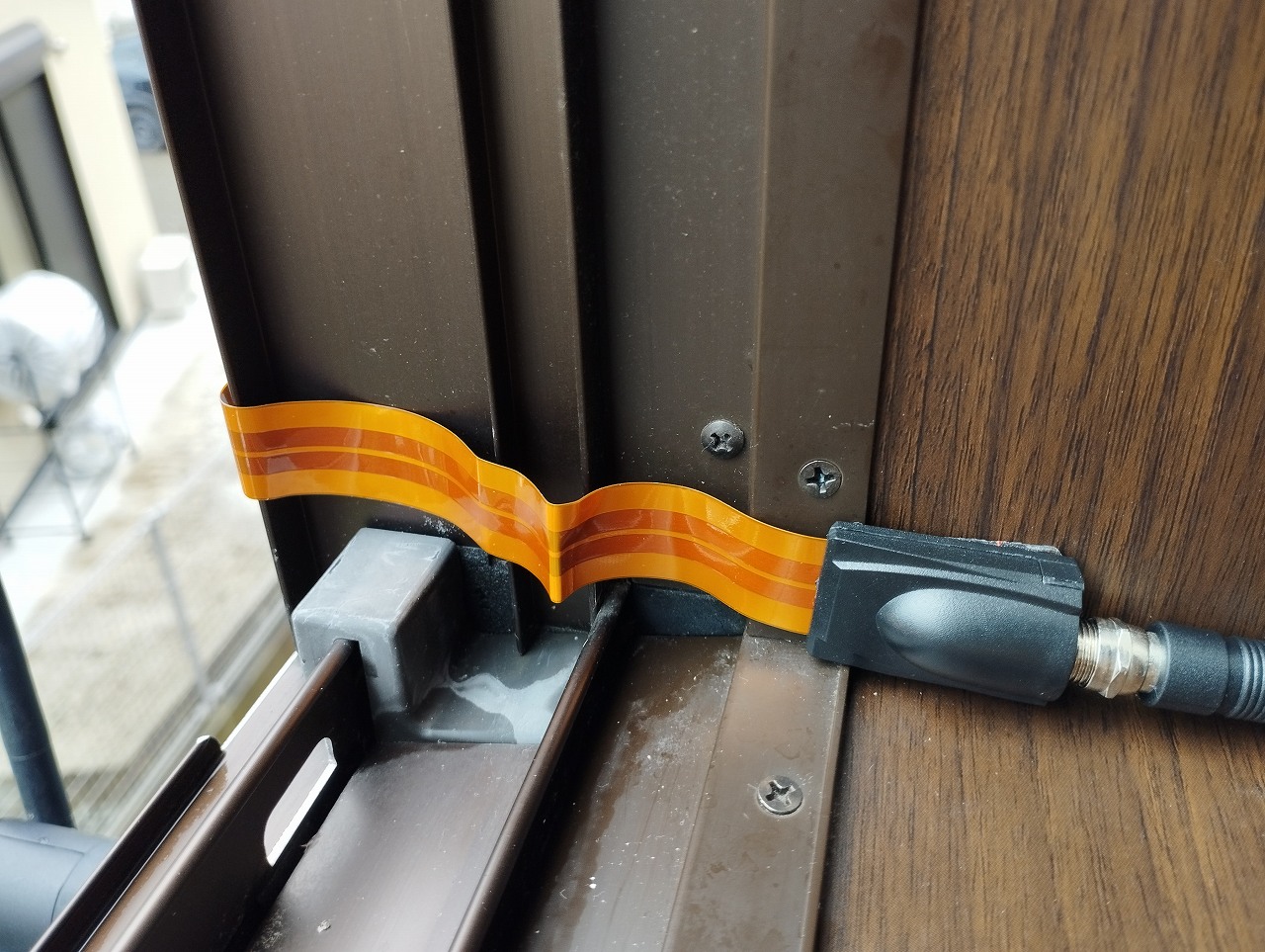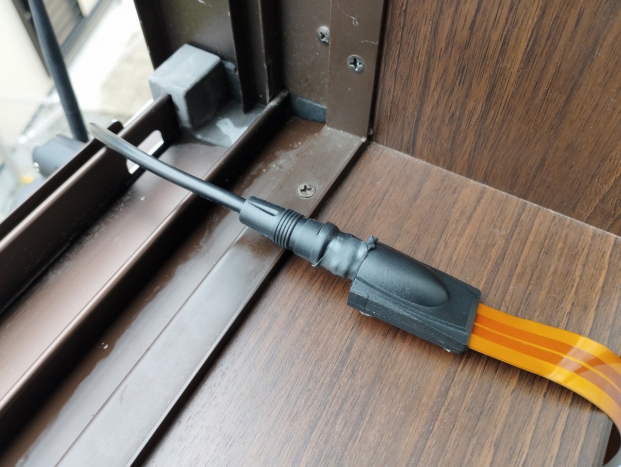 窓の隙間からの配線は、隙間ケーブルを使います