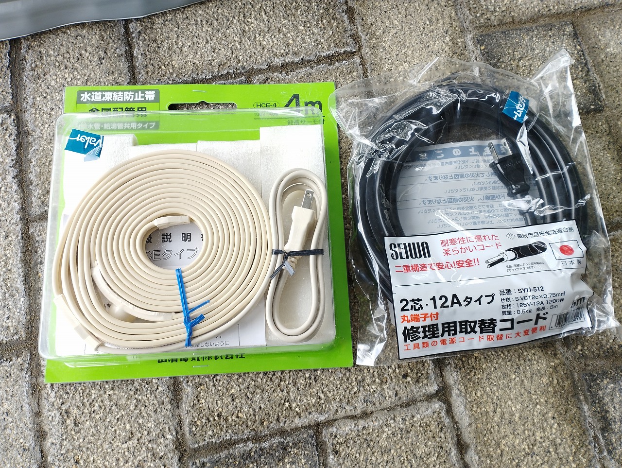 水道凍結防止ヒータ4m 2800円 電源コード 1173円