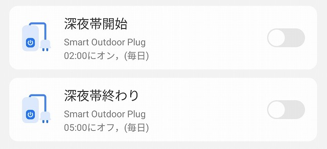 アプリの設定は オンにすると、毎日2時から5時まで ヒーターが入るように設定しました