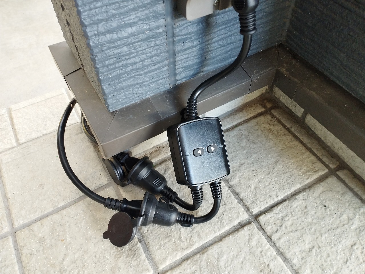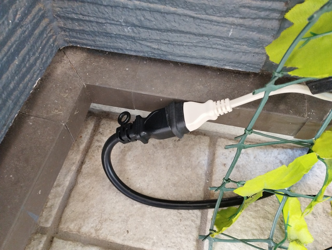 野外用でも、プラグ同士の隙間があると 電気の不具合が怖いので ダイソーの融着テープで、防水対策しました |