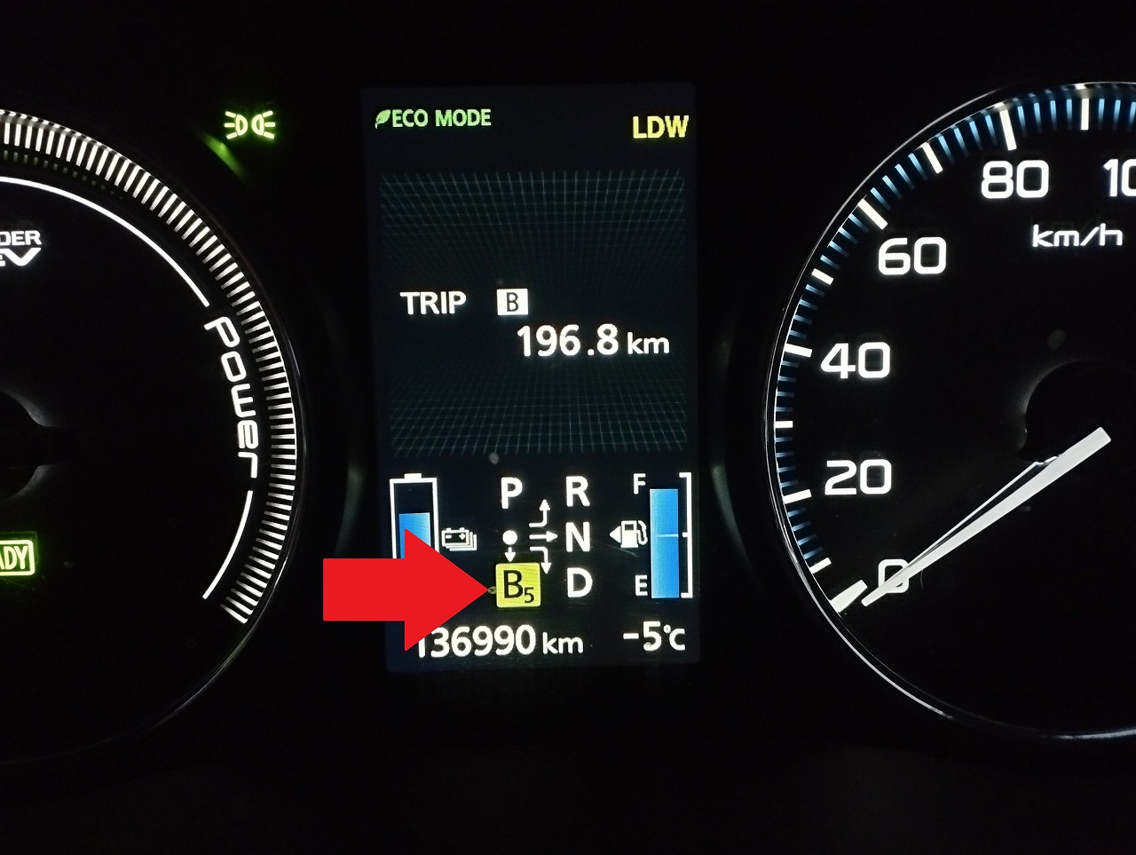 冬道での走行 滑りやすい路面、荒れた路面 何時でも止まるように 回生ブレーキ5での走行が良いと思います |
