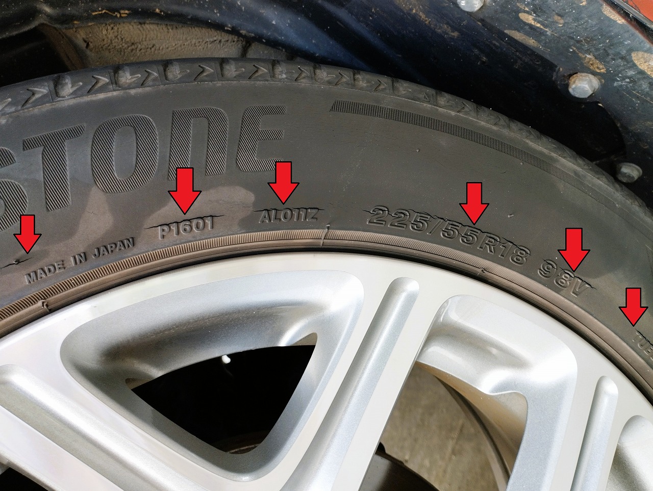 前のオーナーは 運動性重視のタイヤに交換していました 履いていたタイヤはブリジストンのALENZA 001 走りが好きな車好きだったと思います