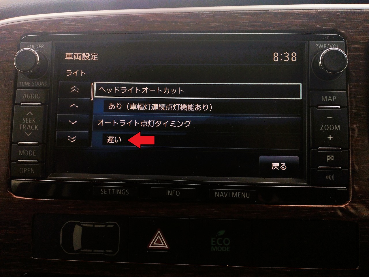 ヘッドライトのオートライト点灯タイミング設定を 遅い変更しました